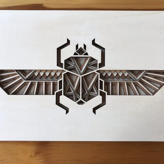 oeuvre Scarabeus contenant 5 couches de bois découpé au laser